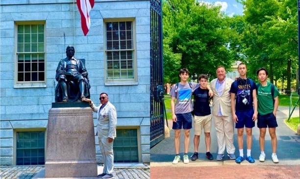 Suratda: J. Garvard yodgorligiga yozgi maktab o‘quvchilari bilan an’anaviy tashrifdan lavhalar (Boston, Massachusets, AQSh)